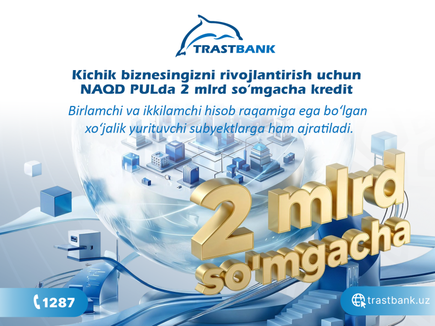 Нужны надёжные финансовые решения для запуска бизнеса, расширения текущего дела или пополнения оборотных средств? «Tрастбанк» предлагает кредит до 2 млрд сумов. Им могут воспользоваться предприниматели, имеющие основной и вторичный расчётные счета.