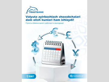 Dam olish kunlarida ham valyuta ayirboshlashingiz mumkin